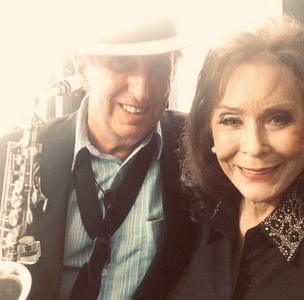 On stage with Peggy Sue Wright and Crystal Gayle after singing "There's a Rainbow" |